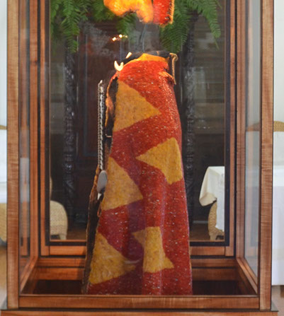 这几件作品在夏威夷岛上的霍阿拉拉四季度假村举行非公开的仪式并受到祝福后,在当地展出至今。作品放置在屡获殊荣的木工匠艾伦·威尔金森(Alan Wilkinson)用寇阿树制作的展示盒中,一起展出的还有一件稀有的乌西乌西(uhiuhi)木制长矛,由夏威夷传统武器工匠曼尼·马托斯(Manny Mattos)制作。