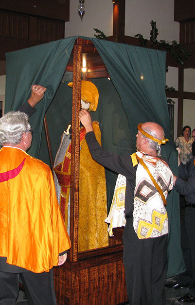 이런 정교한 예술품들은 하와이의 유명한 깃털공예품 예술가 릭 산 니콜라스에 의해 창조되었습니다. 산 니콜라스와 파커는 모두 카메하메하 왕의 직계 후손입니다. 그 예술품들은 하와이 전승유물 재조림 협회에 의해 제작이 의뢰되었습니다.