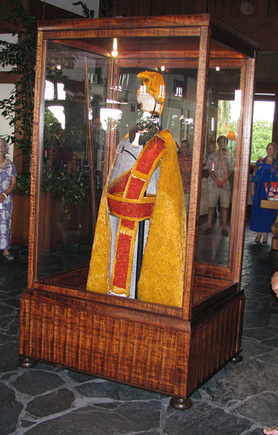 하와이 전승유물 재조림 협회는2013 년에 카메하메하 국왕 1세가 착용했던 망토, 장식띠 및 헬멧의 깃털 공예품을 재현하는 첫 번째 컬렉션을 의뢰했습니다