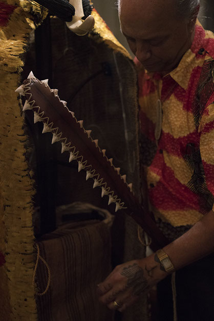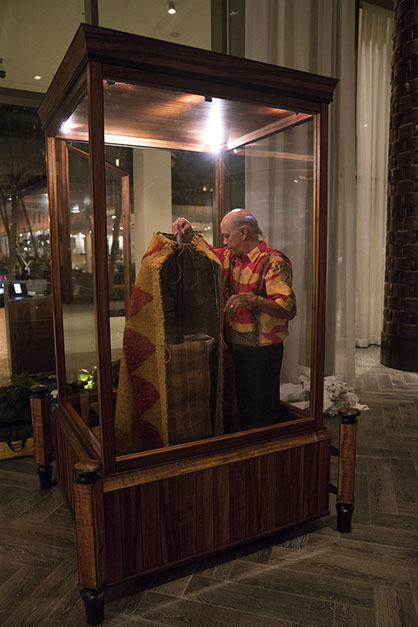 The pieces were dedicated in a private ceremony and blessing at the Four Seasons Resort Hualalai on Hawaii Island, where they will remain on display in a custom created koa wood case by award winning wood artisan Alan Wilkinson, along with a rare uhiuhi wood spear crafted by traditional Hawaiian weapon maker Manny Mattos.