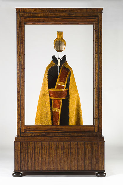 In 2013 Hawaiian Legacy Reforestation Initiative commissioned the first collection of featherwork art reproductions; a cape, sash and helmet worn by King Kamehameha I.