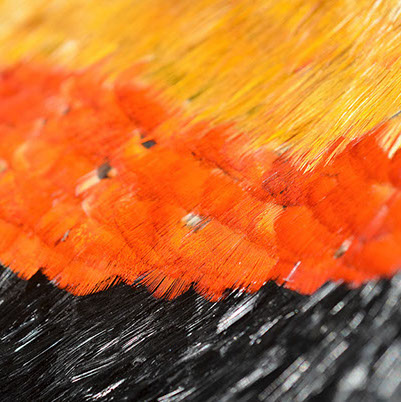 “The High Chief Ke‘eaumoku Pāpa‘iahiahi lived from 1736–1804 and was instrumental in helping King Kamehameha I ascend to the throne as Hawai'i’s first king, but no known featherwork pieces or depictions exist of his full cloak, so I spent months researching the design around the back that correlates with the front sections shown in Brook Kapukuniahi Parker’s painting,” said San Nicolas. “I sought advisement from experts at the Bernice Pauahi Bishop Museum in Honolulu when starting the collection. It is such an honor to work on this project, and it represents a critical continuation of Hawaiian featherwork.
