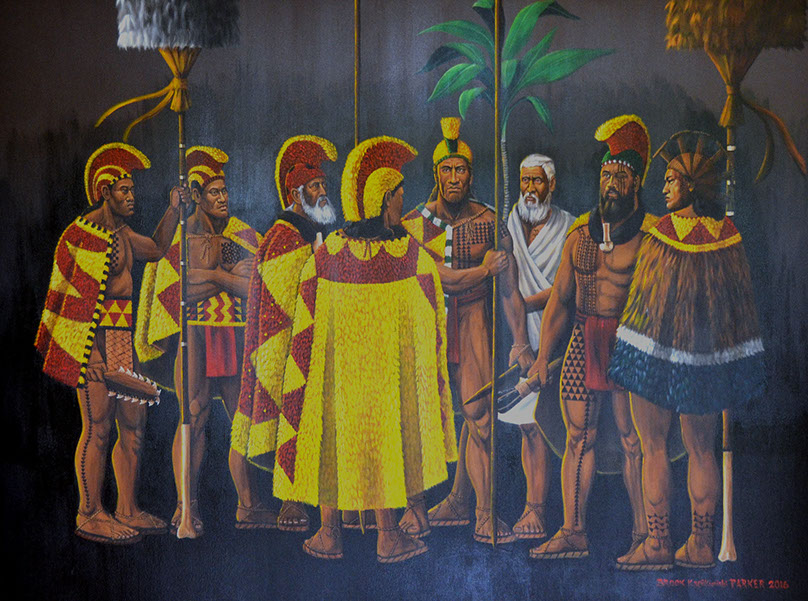 In 2013 work began on a series of 14 capes, representing each of the Hawaiian leaders depicted in the painting “Aha‘ula o Kamehameha Kunuiākea” by Brook Kapukuniahi Parker, an artist and Hawaiian historian.